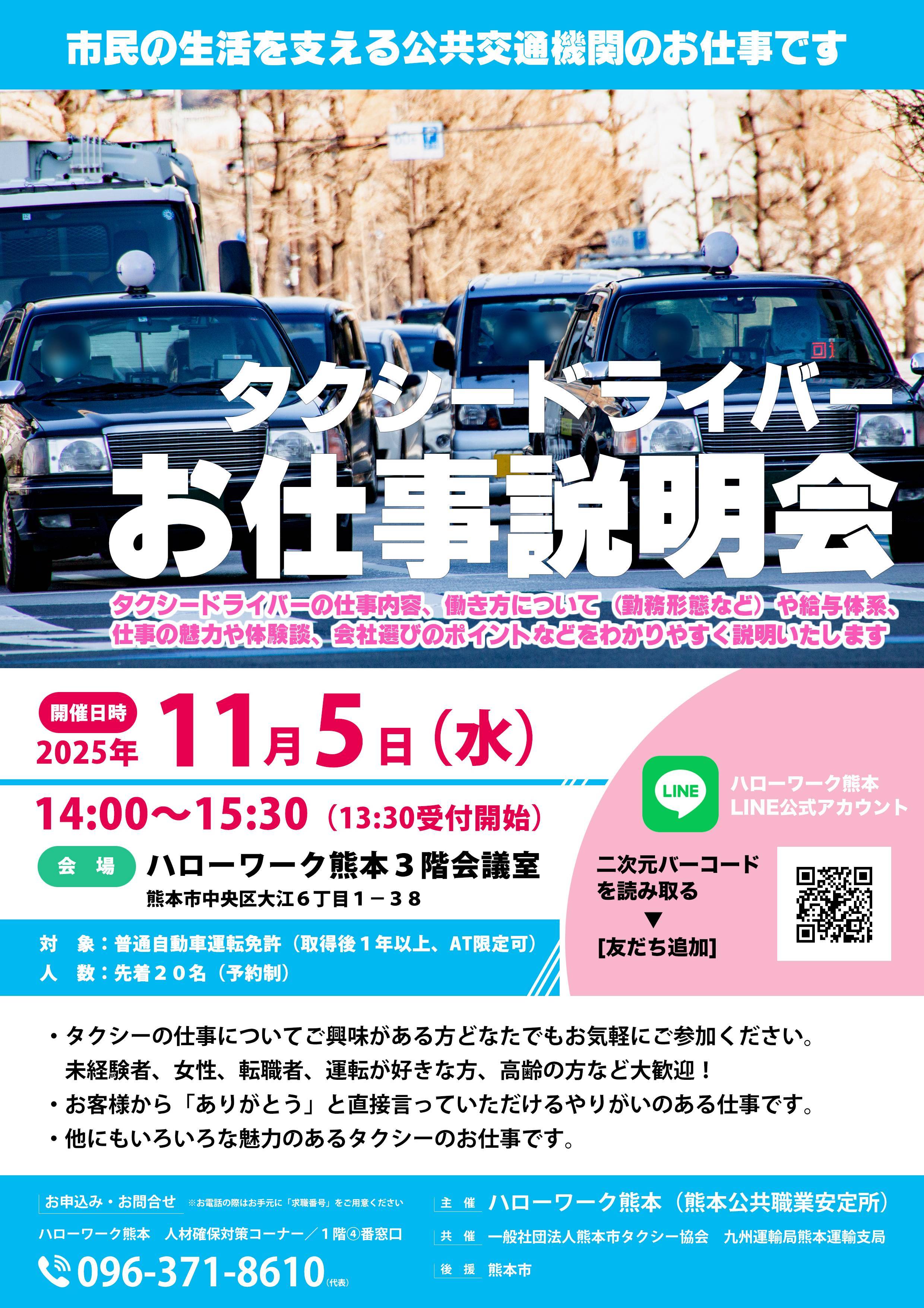 ハローワーク熊本にて「タクシードライバー就職相談会」を開催致します。