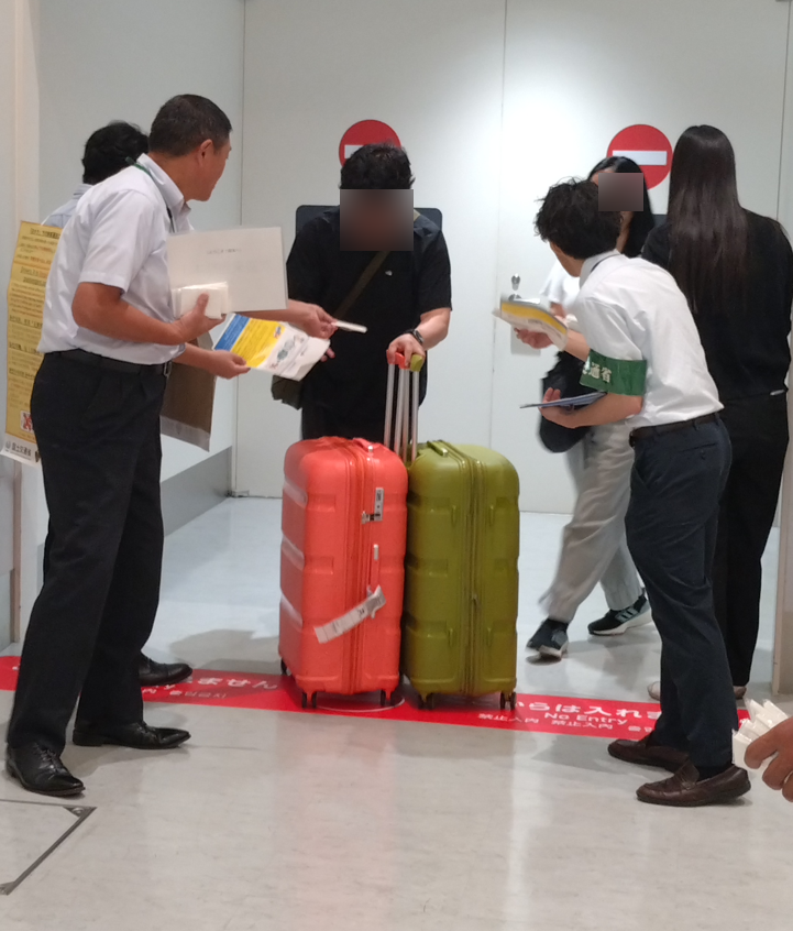釜山及び上海から到着したお客様にチラシを配付しました。